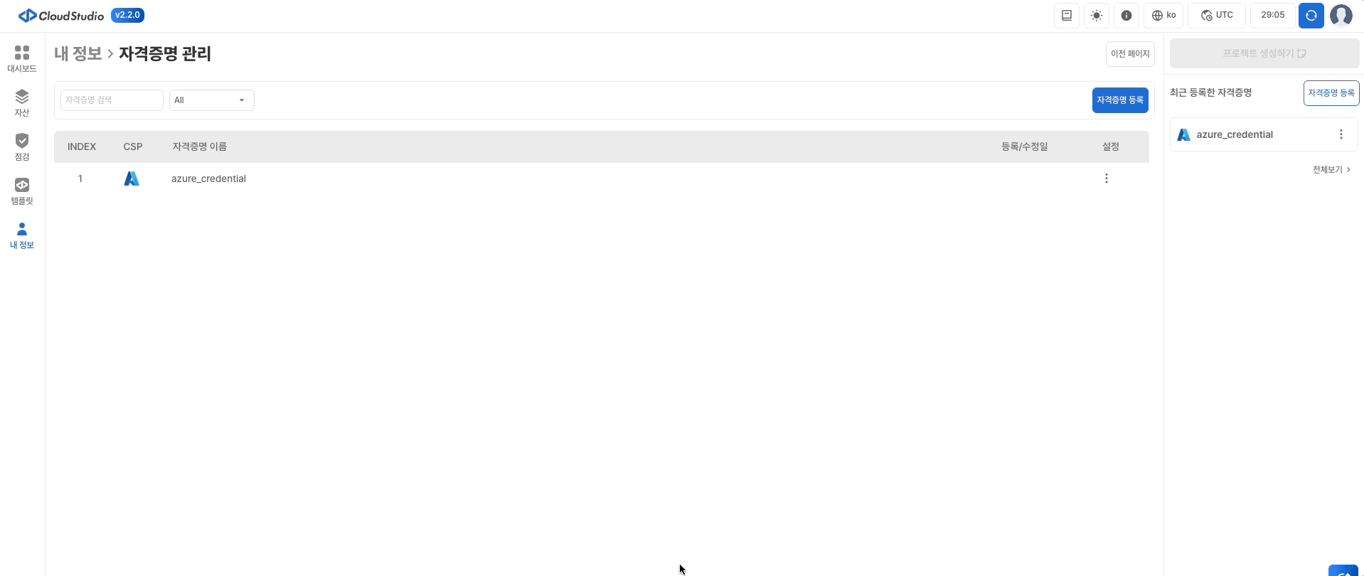 자격증명 관리 페이지에서는 등록된 자격증명 정보를 확인하고 삭제할 수 있습니다.