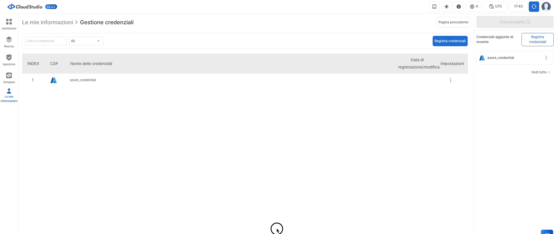 Nella pagina di gestione delle credenziali è possibile visualizzare ed eliminare le credenziali registrate.