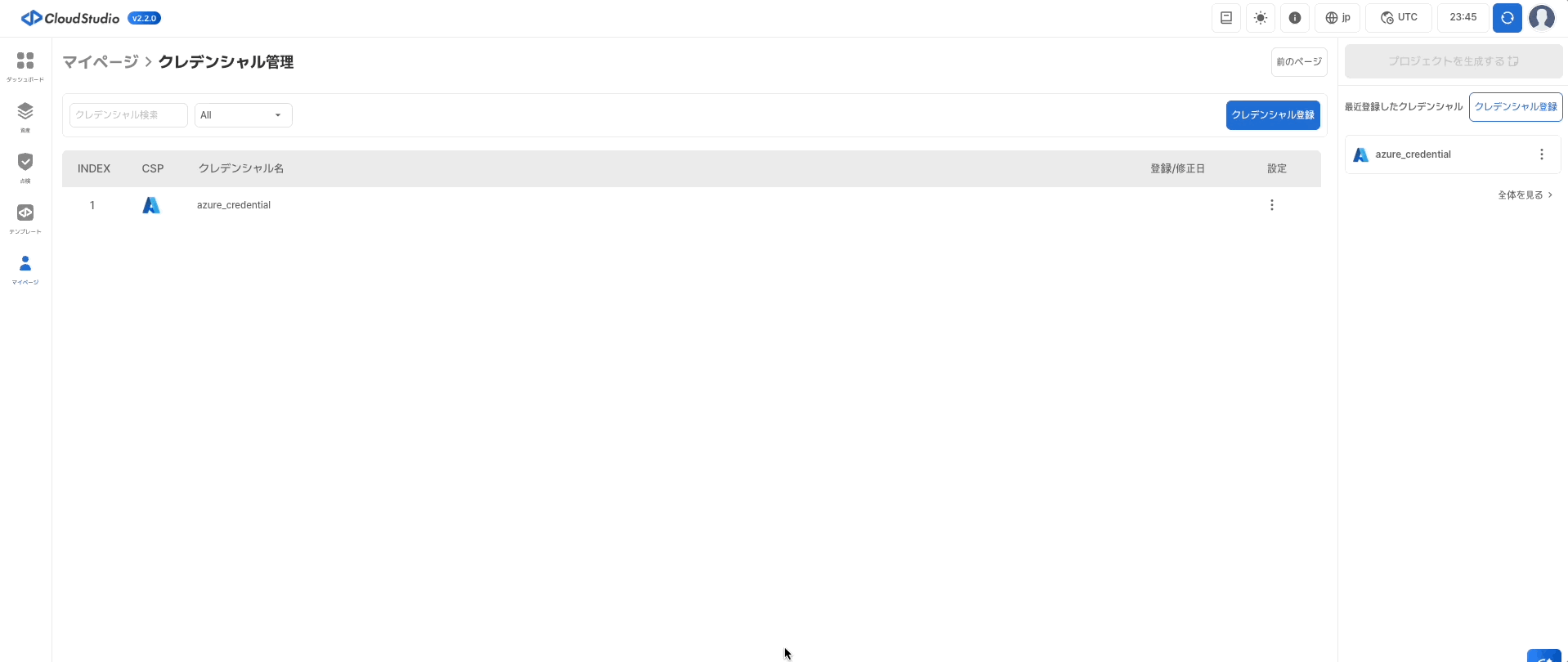 マイページ > クレデンシャル管理をクリックします。- 設定で